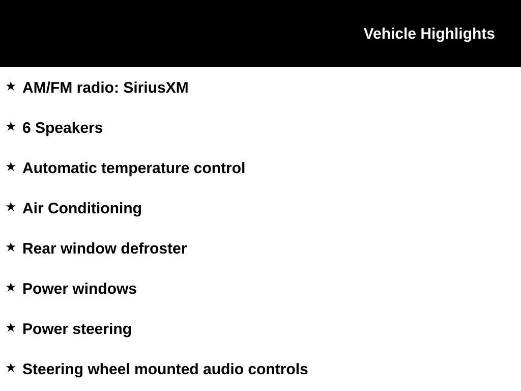 - 6 Speakers, SiriusXM, Steering Wheel Mounted Audio Controls