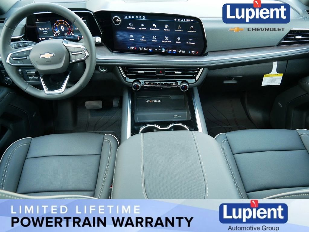 The interior of the Tahoe Premier is a true sanctuary, with premium Perforated Leather Seat Trim, Heated and Ventilated front seats, and a Dual-Pane Power Panoramic Sunroof that floods the cabin with natural light. The advanced Chevrolet Infotainment 3 Premium system, complete with a 17.7 Diagonal Advanced Color LCD Display, seamlessly integrates your smartphone and provides a wealth of connectivity and entertainment options.