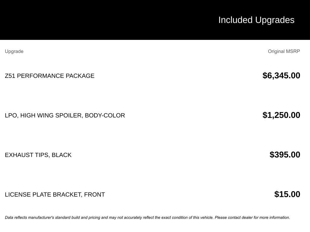 - Z51-specific front splitter and rear spoiler