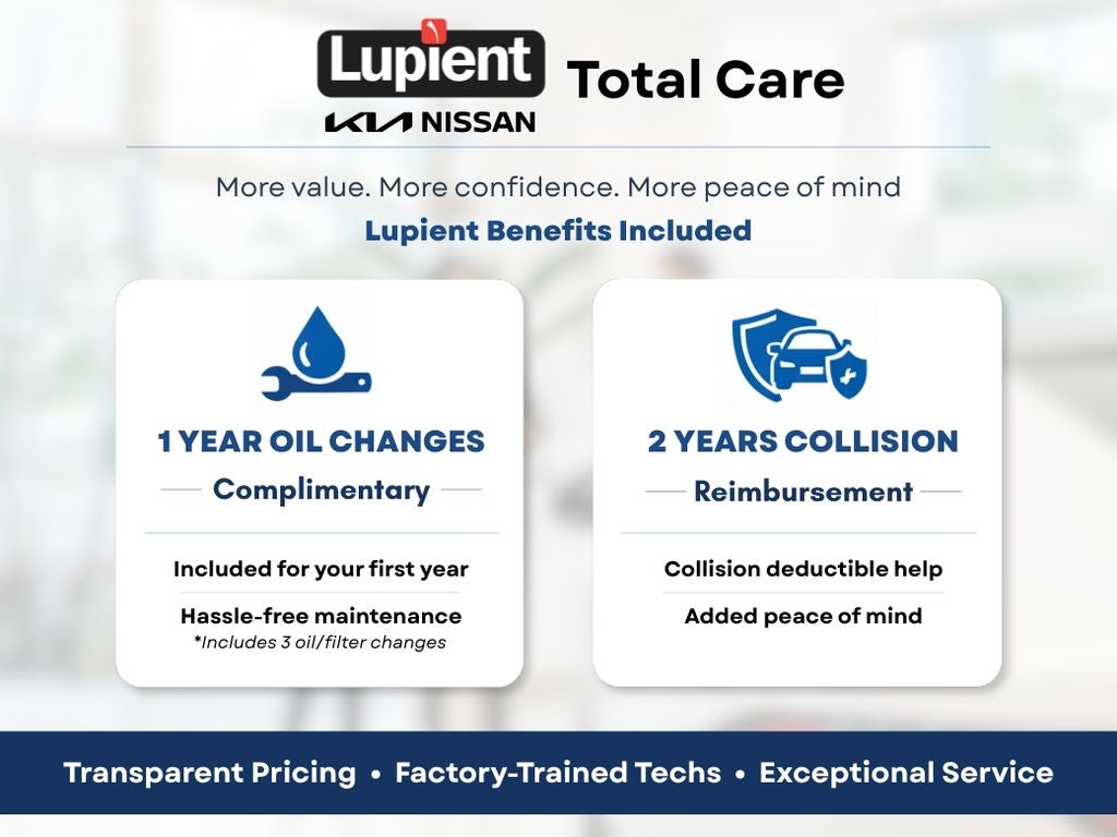 Every new vehicle includes Lupient Total Care, featuring 1 year of maintenance (3 oil changes), 2 years of collision reimbursement, and a Lifetime Powertrain Warranty on eligible non-EV vehicles. Backed by transparent pricing, factory-trained technicians, top-rated Google reviews, and the longest-tenured staff in the Twin Cities, Lupient makes vehicle ownership simple and worry-free.